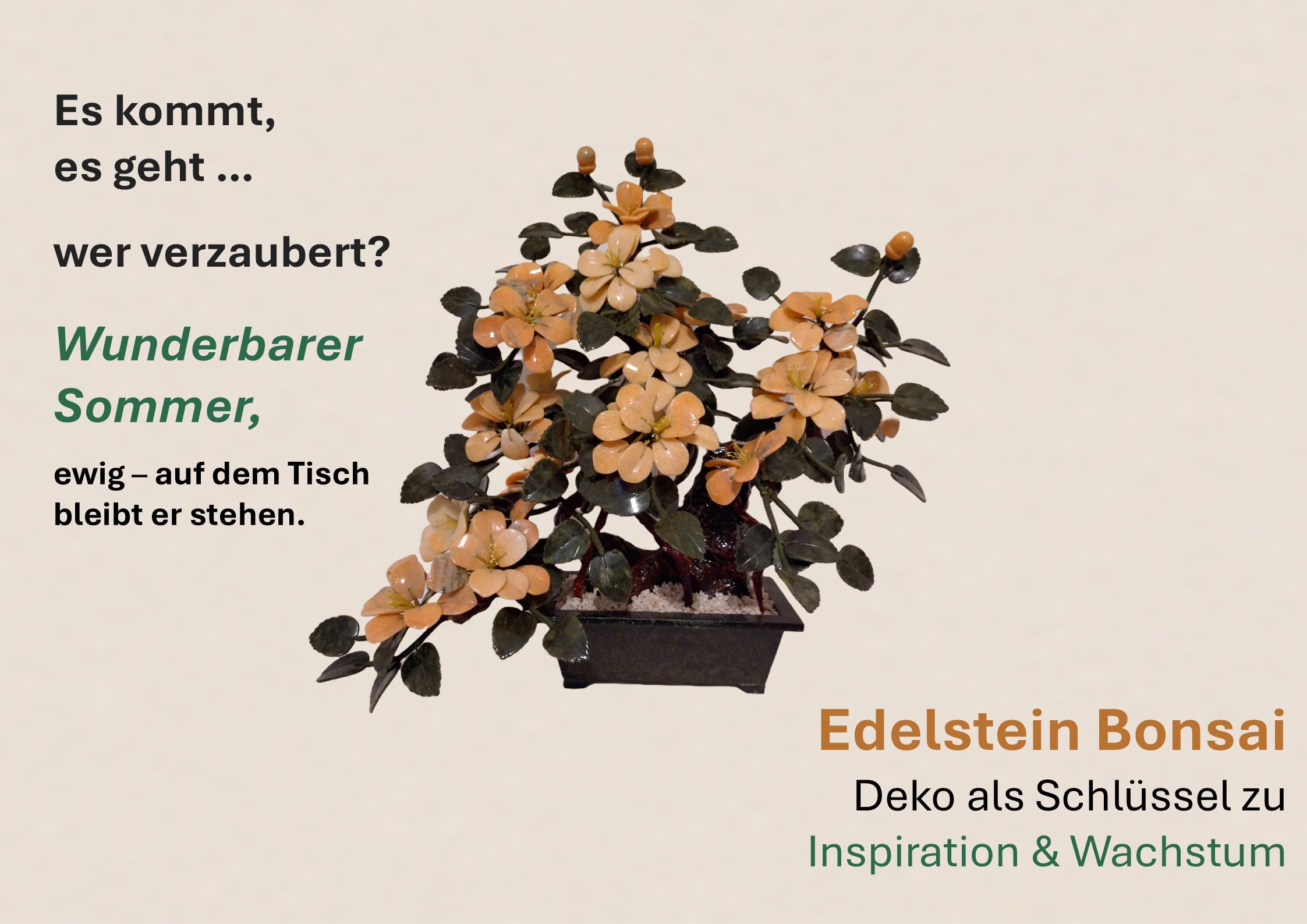 Ein Edelstein-Bonsai steht für Beständigkeit, Glück und die Blüte, die nie vergeht.